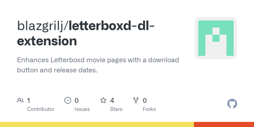 grill@thelemmy.club to Piracy: ꜱᴀɪʟ ᴛʜᴇ ʜɪɢʜ ꜱᴇᴀꜱ@lemmy.dbzer0.comEnglish · 6 小时前Letterboxd Browser Extension - Download Button & Release Datesplus-squaregithub.comexternal-linkmessage-square3linkfedilinkarrow-up115arrow-down10