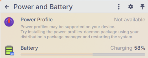 tuned-admto switch to profiles, but since I am using a DE, I won’t be doing that. Now reboot and the power profile slider should be working!