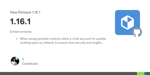 Enhancements: When using parental controls, allow a child account to update existing apps by default, to ensure that security and bugfix updates can be installed. This can be overridden by setting...