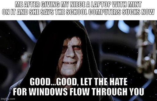 I checked this threads replies because it was a Star Wars meme, but now that I’m here, is Mint good for gaming? I really do NOT want to “upgrade” to Windows 11 but it’s always been gaming that has kept me from going Linux.