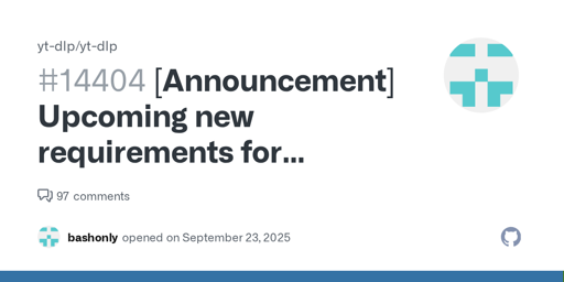 However, it’s clear that YT is waging an incremental campaign here. Today it’s yt-dlp, next week… who knows.