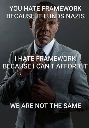 I know it’s not intended, but this meme is low-key saying you support framework (you just can’t afford it)…