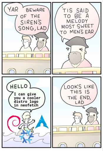 I’m really enjoying Pop!_OS, but their logo could use some workshopping imo. I’ve been considering trying an upstream distro as an educational experience anyway, yet somehow this is what I’m feeling excited about. I don’t know why - nobody but me is ever going to see my neofetch output. Lol