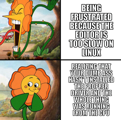 i wish i could go back to the beginning of this year when i bought the nvidia card instead of an amd one (i was still on windows and didn’t switch until march)