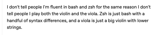 I tried using zsh again after having used fish for a while, but I just couldn’t do it. Trying to configure the ergonomics that fish ships OOTB into zsh was a pain, and I couldn’t get it to a satisfactory level.