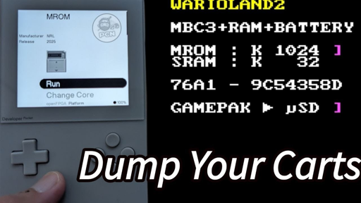 lIlIllIlIIIllIlIlII@lemmy.zip to GameBoy@lemmy.worldEnglish · 2 months agoDunp Game Boy carts and save data with Analogue Pocketyoutu.beexternal-linkmessage-square0linkfedilinkarrow-up15arrow-down10file-text