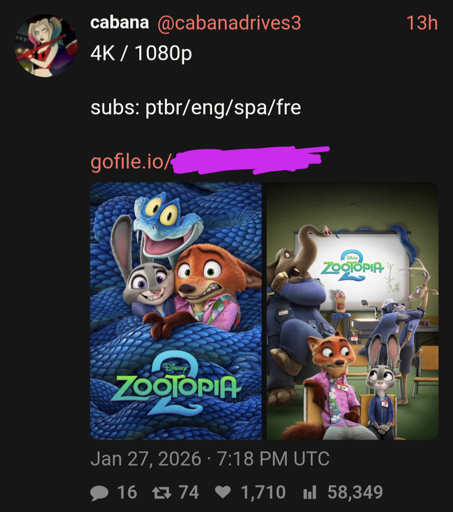 LiamBox@lemmy.ml to Piracy: ꜱᴀɪʟ ᴛʜᴇ ʜɪɢʜ ꜱᴇᴀꜱ@lemmy.dbzer0.comEnglish · 2 months agofor some reason, there are twitter accounts distributing movies in cloud storage rather than torrents.lemmy.mlimagemessage-square65linkfedilinkarrow-up1198arrow-down15file-text
