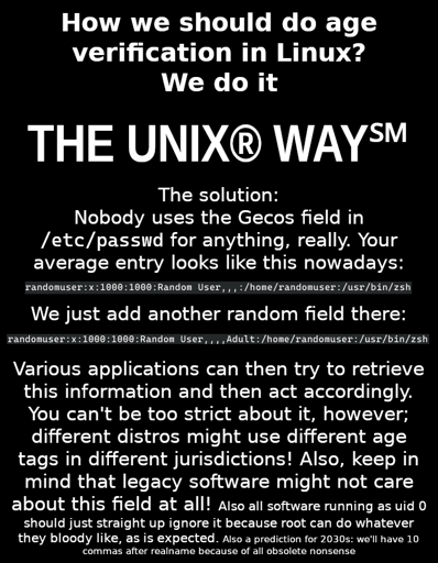 If legislators get grumpy about this, just gently thwap them with your handy copy of The Unix Haters Handbook and tell them you’re working as hard as you can under the circumstances.